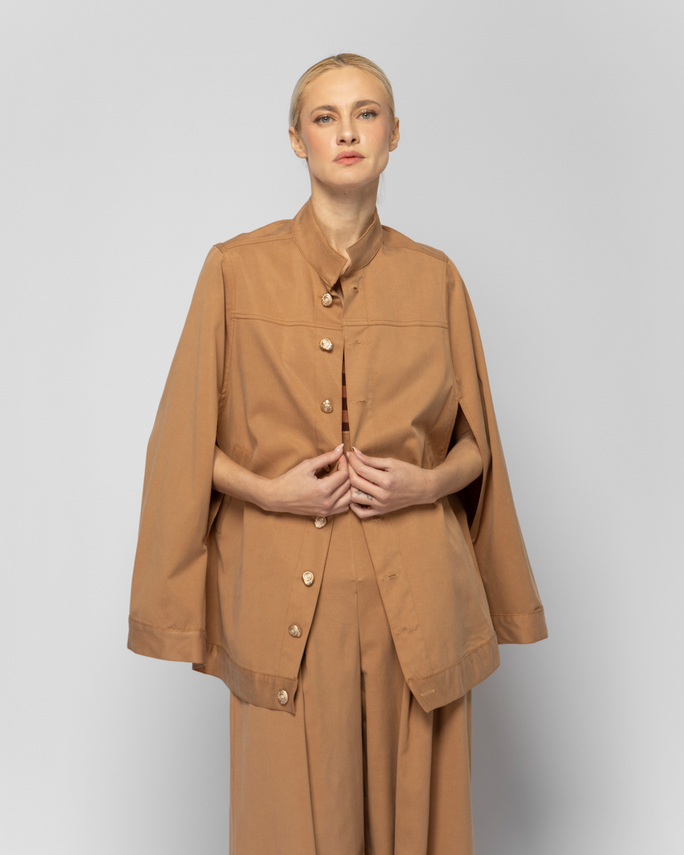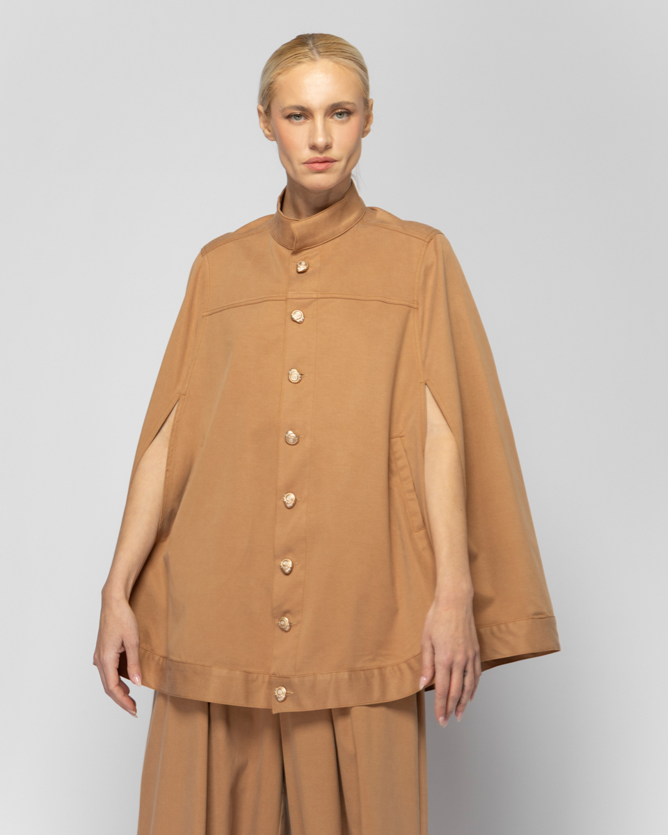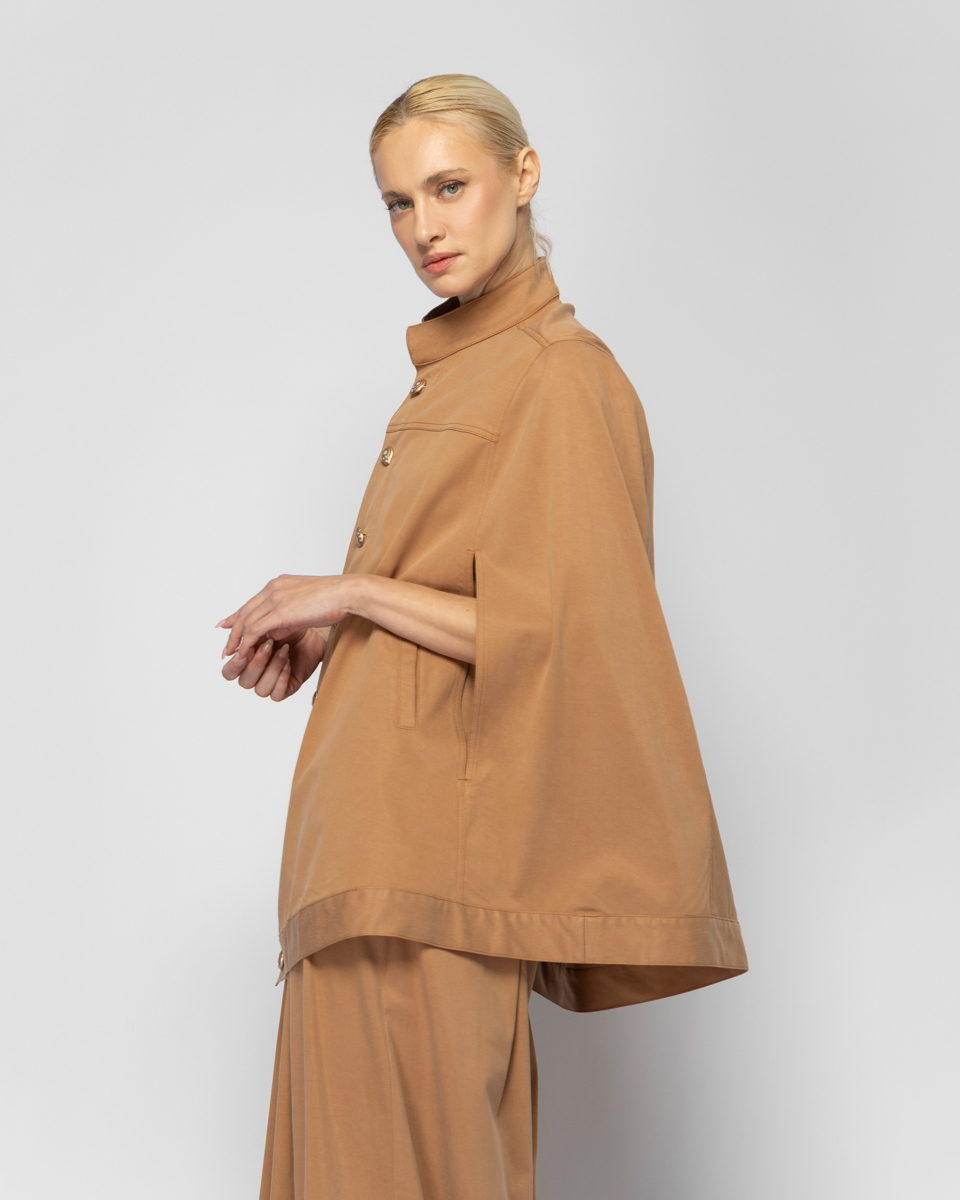 Κάπα από ελαστική βαμβακερή καμπαρντίνα με όρθιο γιακά και τσέπες.