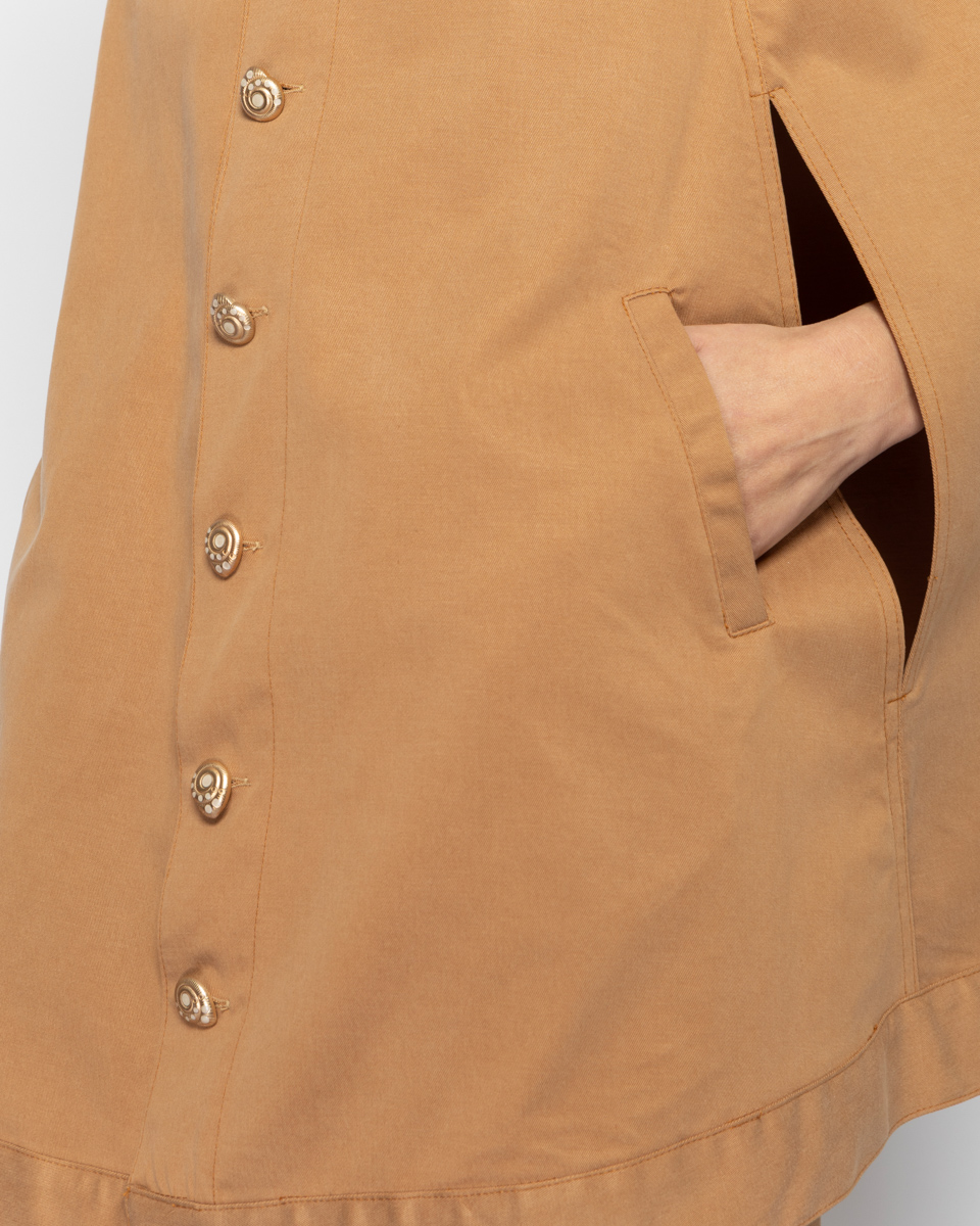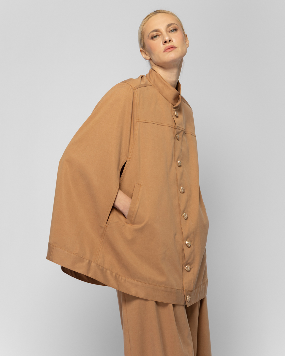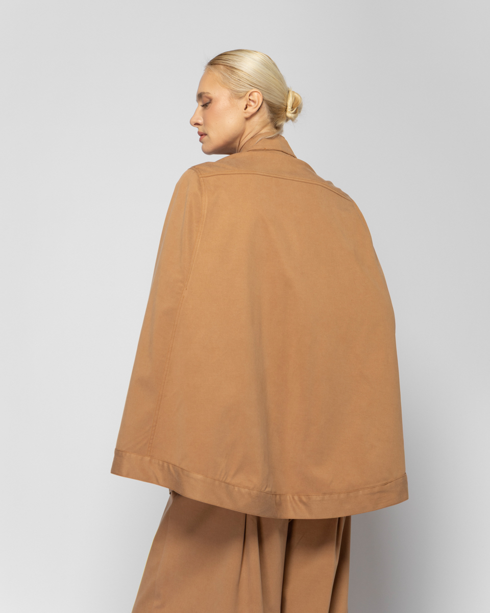 Κάπα από ελαστική βαμβακερή καμπαρντίνα με όρθιο γιακά και τσέπες.