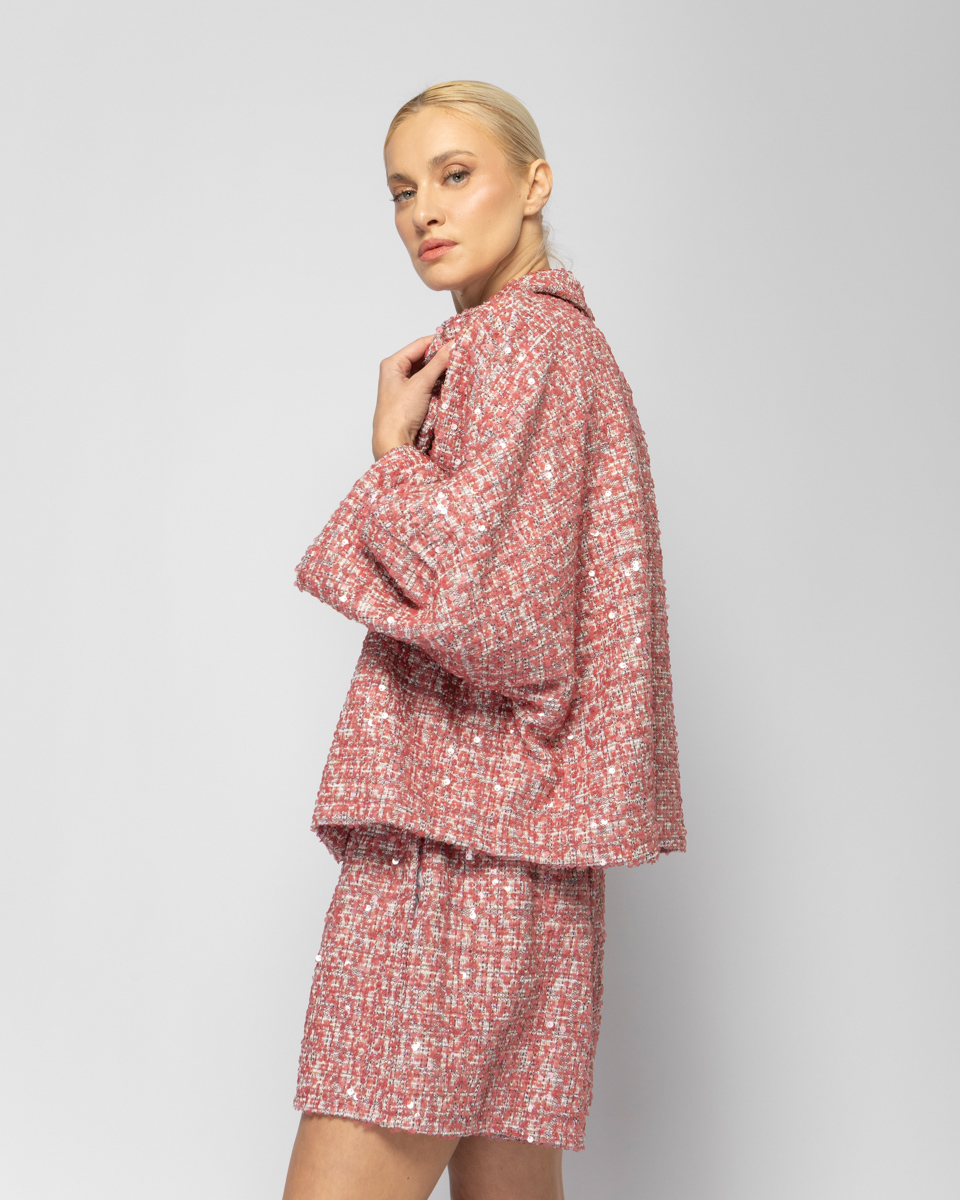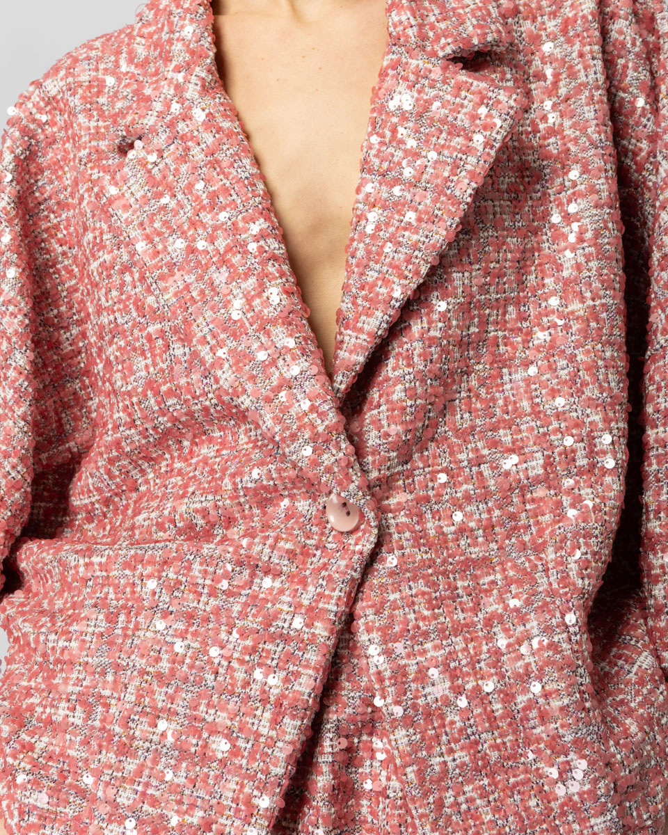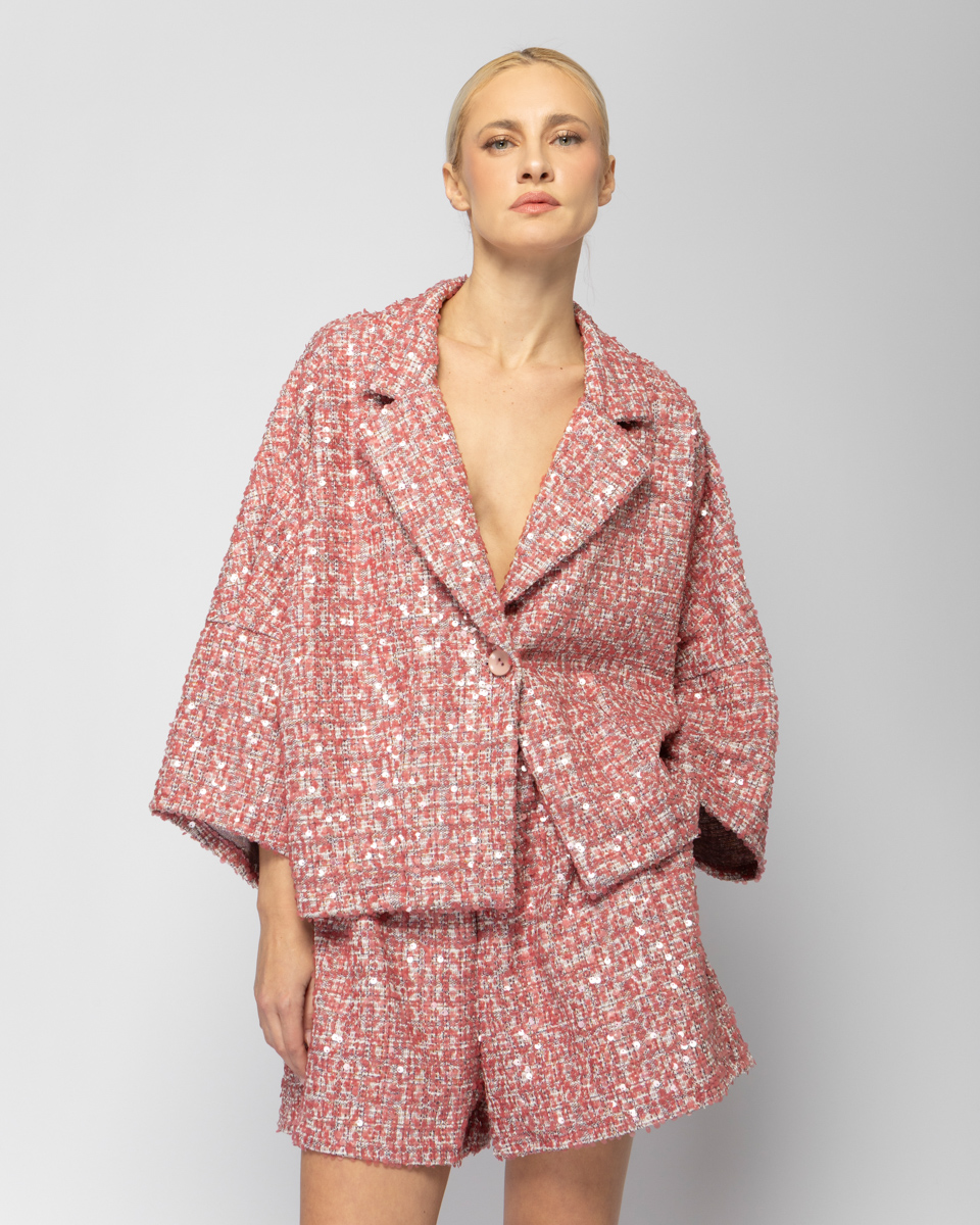 Φαρδύ jacket σε ύφασμα με παγέτες με γιακά πέτο και 3/4 μανίκι.